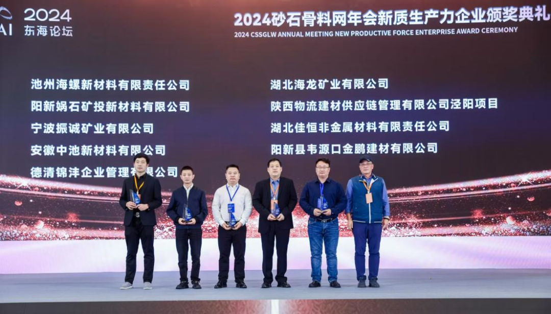 近日,2024年砂石骨料網(wǎng)年會新質(zhì)生產(chǎn)力企業(yè)頒獎典禮在浙江湖州圓滿落幕,集團(tuán)所屬中池公司榮獲“2024年砂石行業(yè)新質(zhì)生產(chǎn)力示范企業(yè)”稱號。