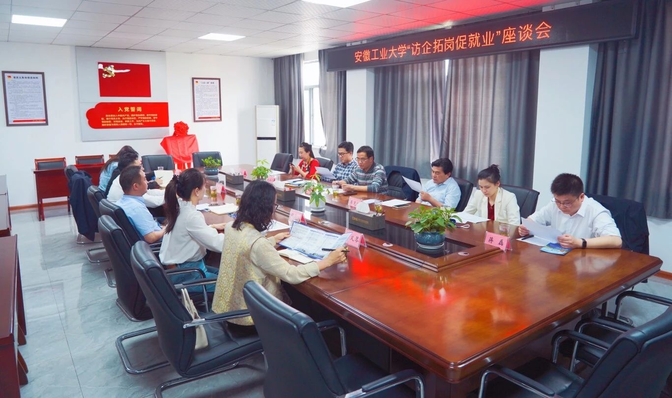 4月17日,安徽工業(yè)大學(xué)赴集團(tuán)召開(kāi)“訪企拓崗促就業(yè)”座談會(huì)。安徽工業(yè)大學(xué)黨委學(xué)生工作部(就業(yè)中心)部長(zhǎng)、主任趙龍,體育部主任李克明及部分學(xué)院副院長(zhǎng),集團(tuán)黨委委員、副董事長(zhǎng)黃代,黨委委員、紀(jì)委書(shū)記吳青清,集團(tuán)人力資源部、人才集團(tuán)相關(guān)負(fù)責(zé)同志參加。
