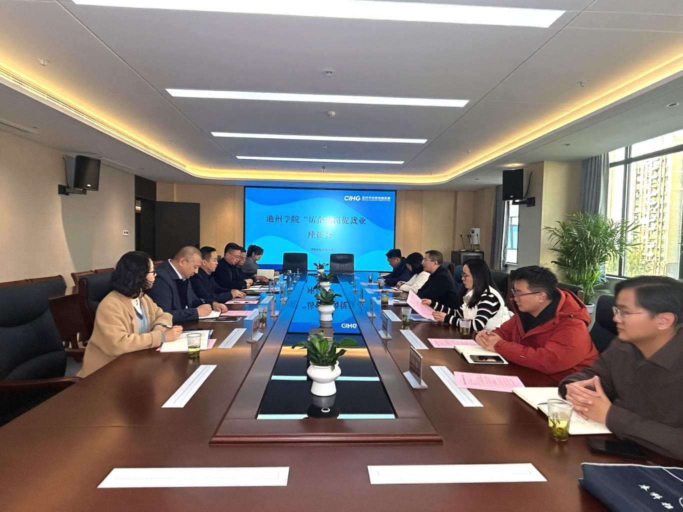 12月16日下午,池州學(xué)院地理與規(guī)劃學(xué)院院長(zhǎng)張樂(lè)勤一行赴集團(tuán)開(kāi)展“訪企拓崗促就業(yè)”活動(dòng),集團(tuán)黨委委員、副董事長(zhǎng)黃代熱情接待并座談交流。集團(tuán)人力資源部及二級(jí)集團(tuán)負(fù)責(zé)人、池州學(xué)院地理與規(guī)劃學(xué)院各系主任參加座談交流。