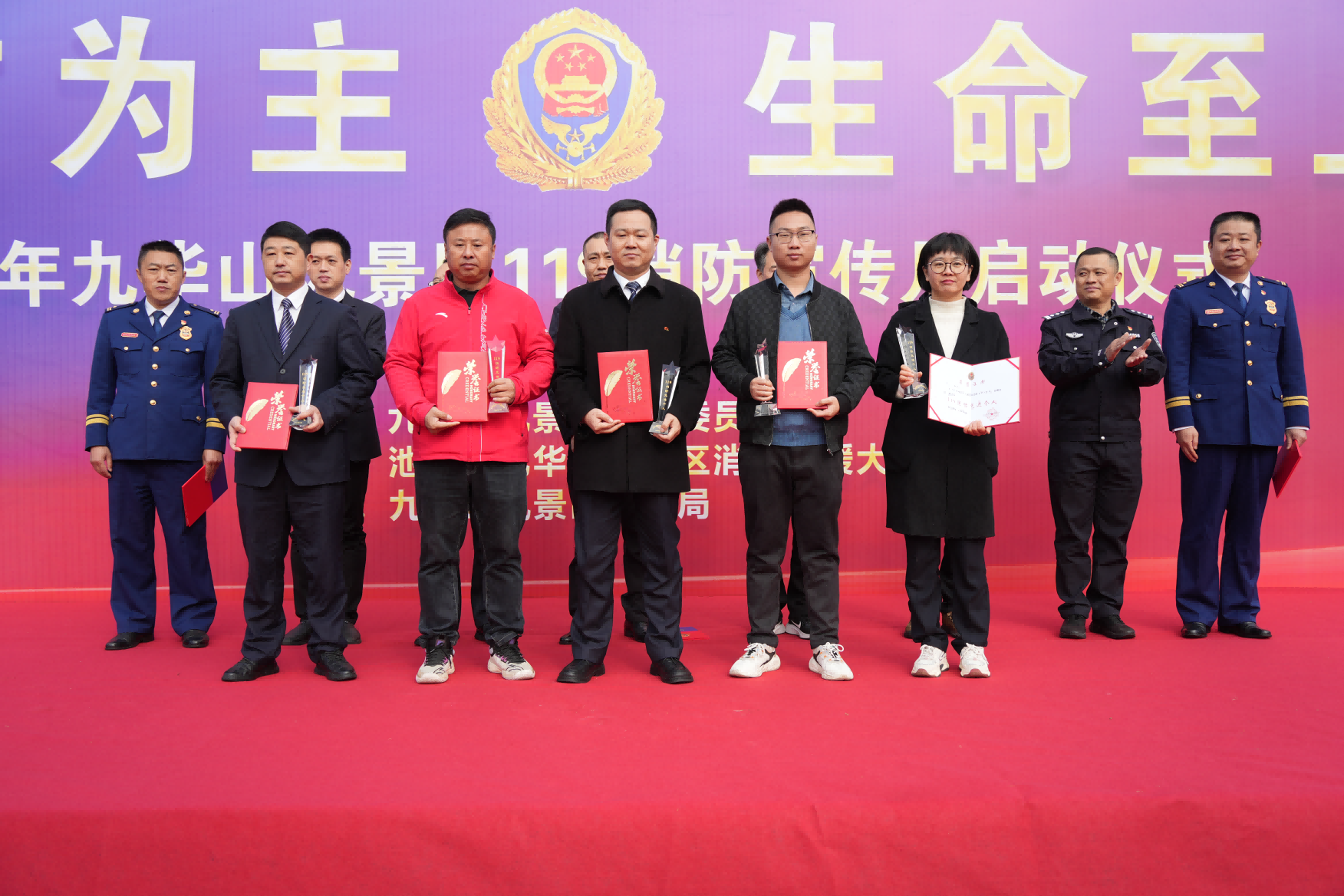 九華山風(fēng)景區(qū)管委會(huì)副主任李剛在啟動(dòng)儀式上作熱情洋溢的致辭,并宣布2023年“119”消防宣傳月活動(dòng)正式啟動(dòng)。會(huì)上,宣布了2023年全山119消防先進(jìn)集體、先進(jìn)個(gè)人名單,與會(huì)領(lǐng)導(dǎo)為獲獎(jiǎng)集體和個(gè)人頒獎(jiǎng)。文化園分公司綜合部副經(jīng)理、安委辦主任鄧慧敏榮獲全山119消防先進(jìn)個(gè)人稱號(hào)。