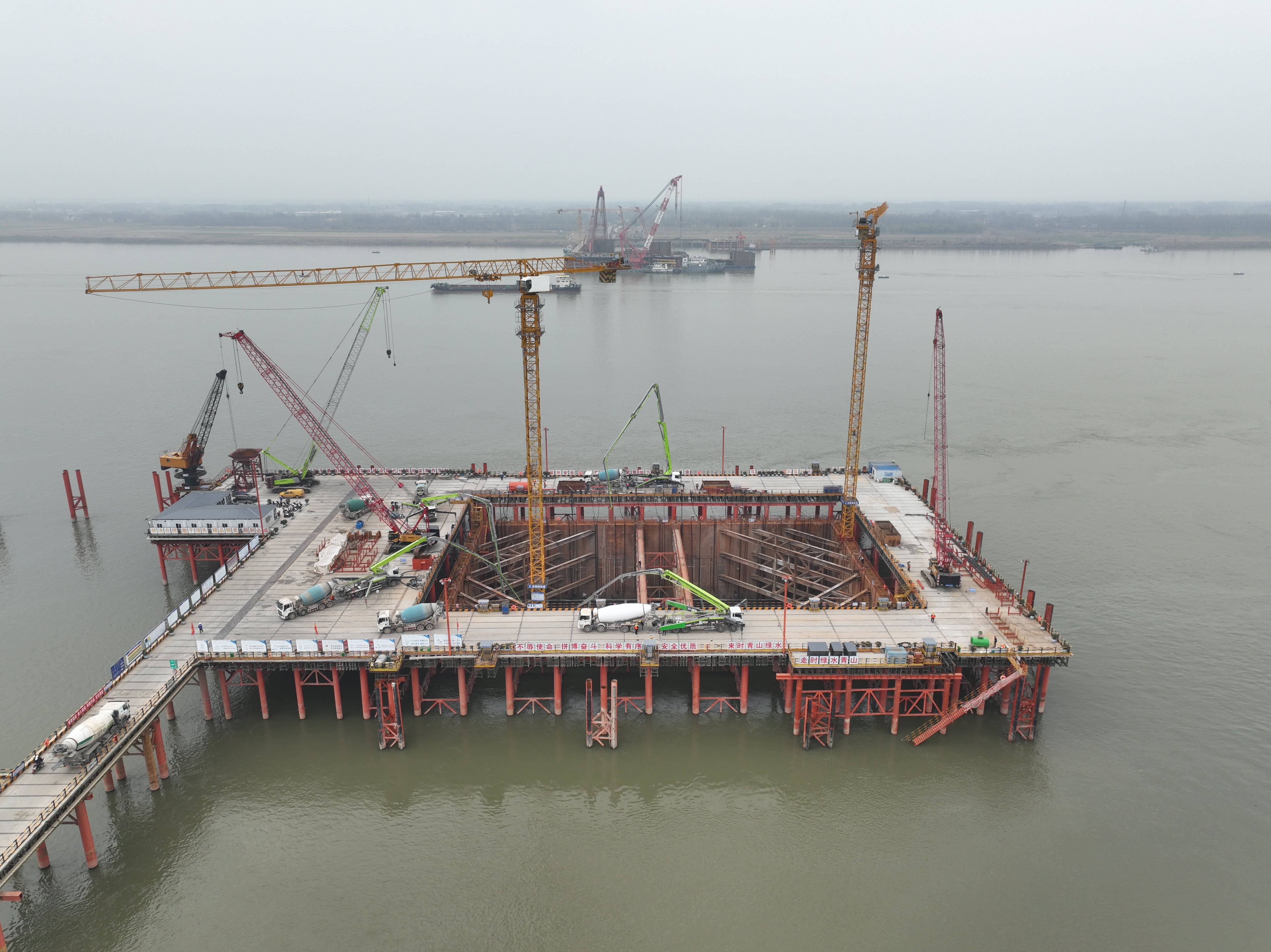 3月17日上午,皖江之畔,由建投集團承建的池州長江公鐵大橋南岸4號主墩迎來新年首個節(jié)點。歷時約90個小時的連續(xù)施工,大橋4號主墩承臺首次混凝土澆筑順利完成,也是全橋首次進行主墩承臺澆筑混凝土,標志著池州大橋南岸率先轉入承臺施工,為后續(xù)施工奠定了良好基礎。