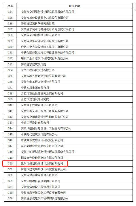 4月10日,安徽省住房和城鄉(xiāng)建設(shè)廳發(fā)布了《關(guān)于對(duì)2022年度安徽省建筑業(yè)龍頭骨干企業(yè)進(jìn)行表揚(yáng)的通報(bào)》,集團(tuán)所屬池州市規(guī)劃勘測(cè)設(shè)計(jì)總院有限公司榮登榜單。